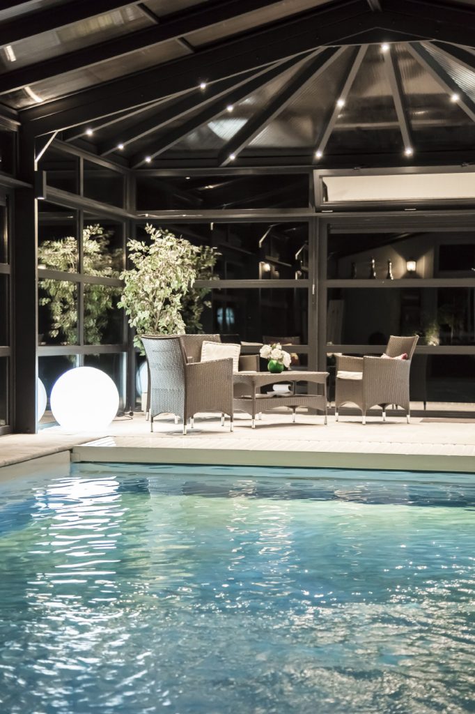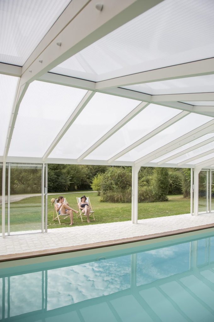 Un abri de piscine en aluminium confortable avec profilés clairs