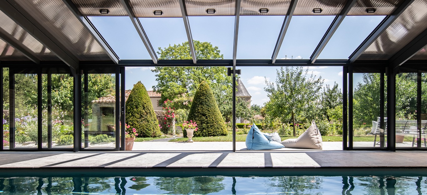 En Nouvelle-Aquitaine Véranda piscine à toiture en polycarbonate bronze En Nouvelle-Aquitaine Véranda POUR PISCINE haut de gamme en Nouvelle-Aquitaine L’art du sur-mesure dans les moindres détails https://vimeo.com/386026375 L’harmonie architecturale qui se dégage de cet abri haut véranda séduira à coup sûr les amateurs de lieux paisibles et esthétiques. Son toit ouvrant en polycarbonate bronze et ses baies coulissantes dessinent un passage naturel entre intérieur et extérieur. …Continuer la lecture →