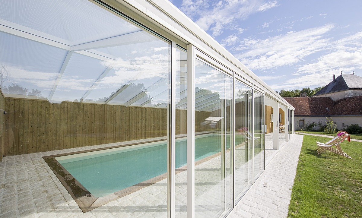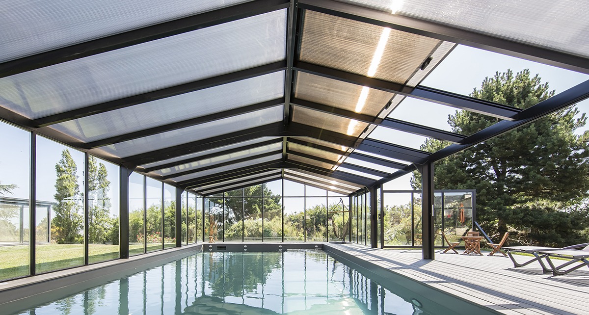 Sans dénaturer le paysage, le modèle Slim sait s’imposer en tant que construction de qualité et son application sur-mesure ne fait que renforcer ses possibilités d’adaptation. Plus économique que sa voisine Virginia, l’abri de piscine haut Slim ne manque pourtant pas d’atouts et offre un abri autoportant élégant pour votre piscine intégrée dans un environnement naturel.