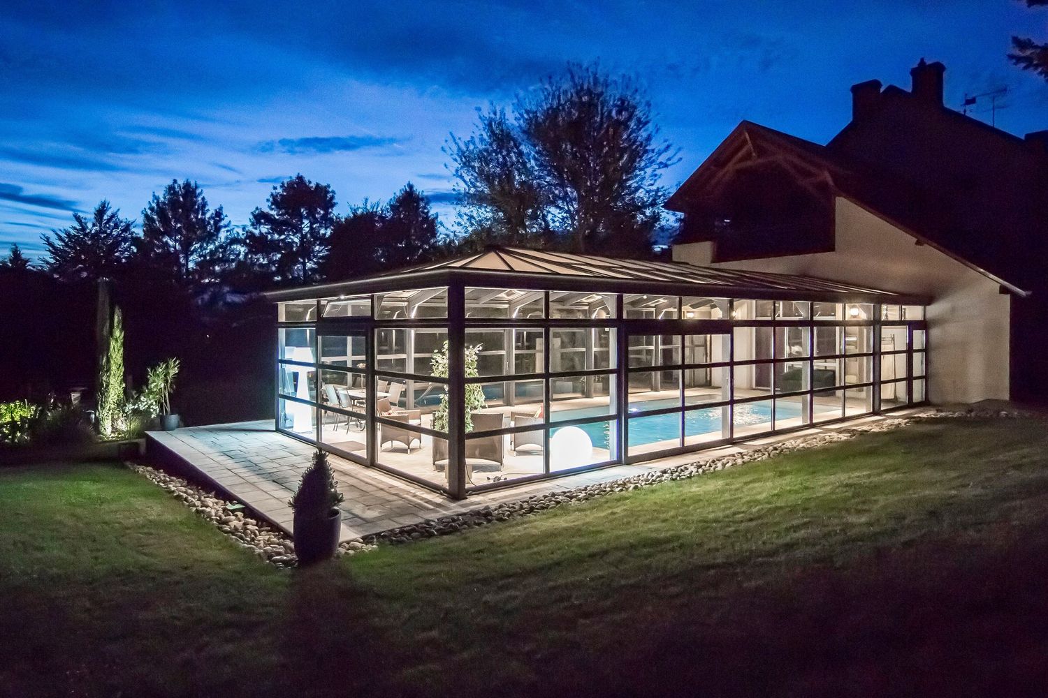 Veranda à profilé aluminium VirginiaLe saviez-vous ? Notre créativité et nos possibilités de personnalisation sont infinies! Toiture à une pente ou deux pentes, toiture horizontale, fer forgé, teinte bicolore, véranda indépendante ou extension d’habitation… La véranda à profilé aluminium Virginia se construit aux grés de vos envies. Chaque défi architectural est relevé avec brio : nous avons une solution pour toute contrainte urbanistique, grâce à la capacité d’innovation inhérente au modèle Virginia. En parallèle à ses options illimitées, elle garantit une isolation parfaite à votre espace de loisirs, à l’aide de ses trois chambres d’isolation et de ses profilés à rupture thermique. Adieu les désagréables sensations de froid à l’entrée et à la sortie de la piscine… peu importe la saison ! Comme un air de vacances, les baies vitrées laissent passer une douce clarté pour apporter tout le confort nécessaire à vos moments de baignade. Piscine intérieure ou extérieure ? Véranda ou pergola ?… Pour profiter des douces journées d’été et de la chaleur du soleil, il suffit d’ouvrir les portes latérales coulissantes de votre véranda ou d’opter, en option, pour l’ouverture motorisée du toit. Il est temps de créer un cadre idyllique autour de votre bassin grâce au modèle Virginia et à ses performances techniques remarquables. Rupture de pont thermiqueApplication sur mesureTeinte bicolore possibleNombreuses options de toitures Intéressé(e) par notre modèle de véranda "virginia" ?Demandez votre devis gratuit