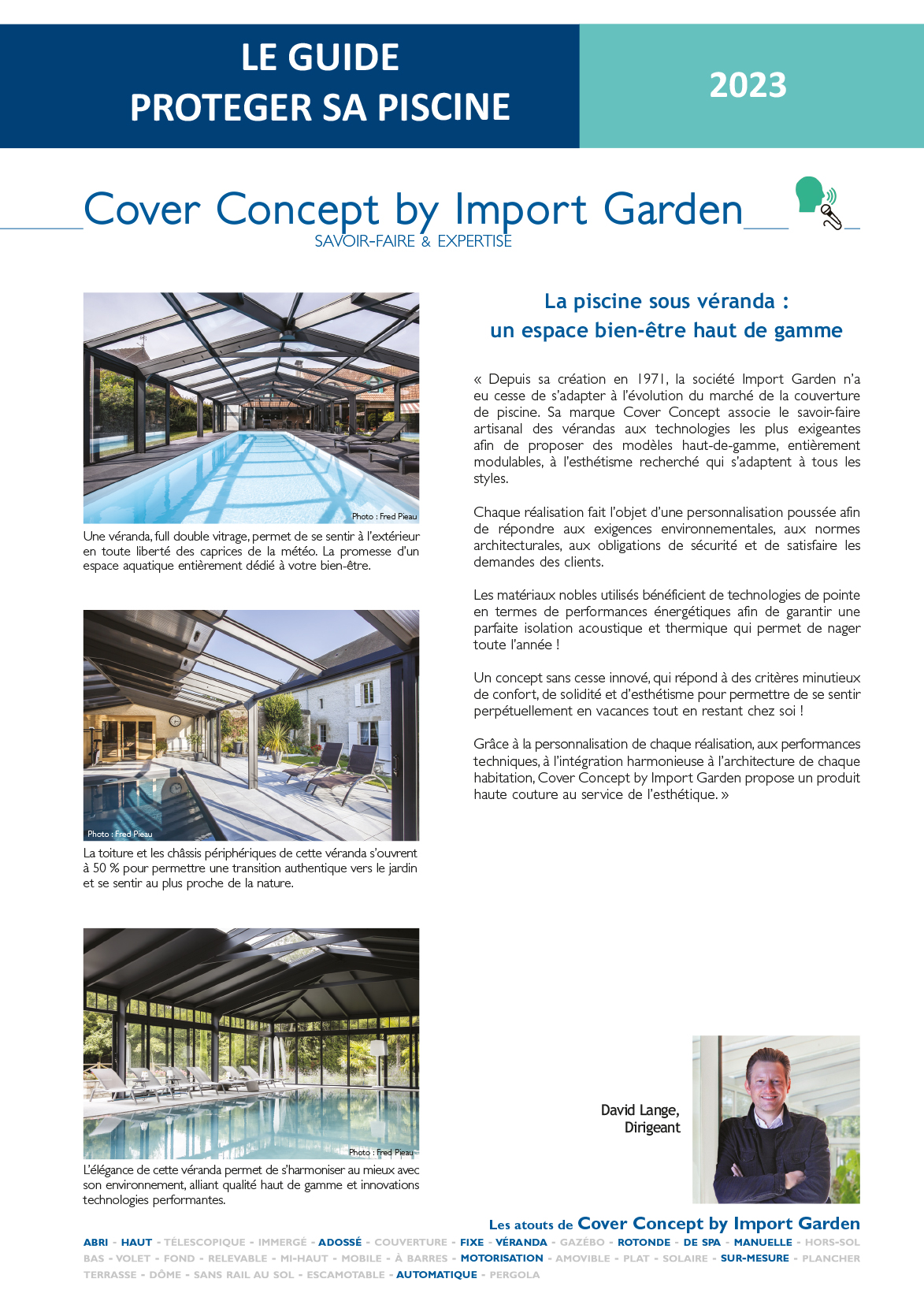 Depuis plus de 50 ans, Cover Concept by Import Garden répond de façon optimale et personnalisée à ses clients. Découvrez, en images, le savoir-faire de  notre société.