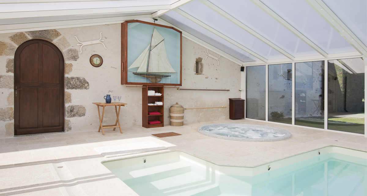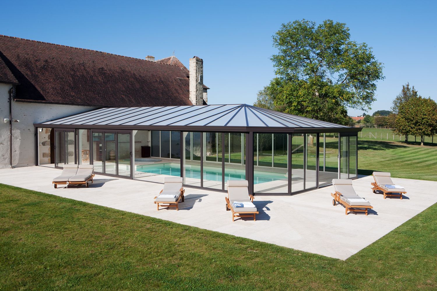 Fruit de persévéranceCette réalisation est la preuve que persévérer pour atteindre ses rêves porte ses fruits. Dans leur ancienne ferme à cour carrée entièrement rénovée à leur goût, Joachim et Anne-Marie étaient heureux. Jusqu’au jour où ils se rendent compte qu’il manque malgré tout quelque chose pour parfaire leur bonheur : un espace détente et bien-être pour se ressourcer, faire de l’exercice et recevoir famille et amis.C’est ainsi qu’ils décident de réaliser une annexe intégrant piscine et jacuzzi directement accessible de la maison. Sensibles à la lumière naturelle et au contact avec la nature avoisinante, ils optent pour une véranda pour piscine Cover Concept. De plus, elle leur offre le luxe de pouvoir nager tous les jours de l’année !Cependant, dès le début de l’étude du projet, Joachim et Anne-Marie rencontrent des difficultés relatives à leur permis de construire soumis à l’avis des Bâtiments de France. Mais ils s’en font une raison et en profitent pour se laisser le temps de la réflexion du moindre détail. Ainsi, la piscine et son abri ont notamment changé d’emplacement et de dimensions à plusieurs reprises. Finalement grâce à leur persévérance, les architectes des Bâtiments de France ont été conquis par les qualités esthétiques et l’accord architectural que leur proposait le projet Cover Concept.L’espace loisir dont rêvaient Joachim et Anne-Marie leur offre aujourd’hui le compromis parfait entre fonctionnalité et esthétique.Détails techniquesDimensions : 8m x 15m Hauteur : 2,20m / 3,36mStructure : aluminium thermolaqué à rupture de pont thermiqueRemplissage : double-vitrage et polycarbonateCouleur : bicoloration marron ral 8019 ext. et blanc ral 9001 int.Vous souhaitez, vous aussi, profiter de bons moments en famille ou entre amis ? Demandez-nous un devis gratuit ! Contactez-nous pour nous confier vos projets etConcrétisez votre coup de cœur