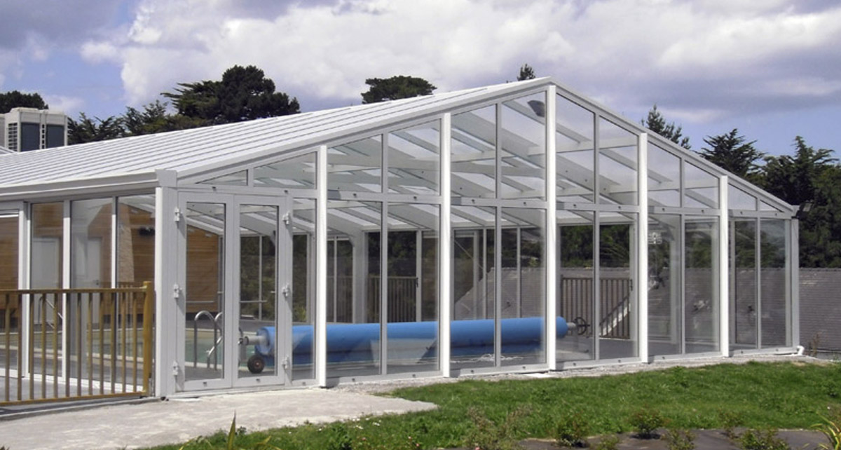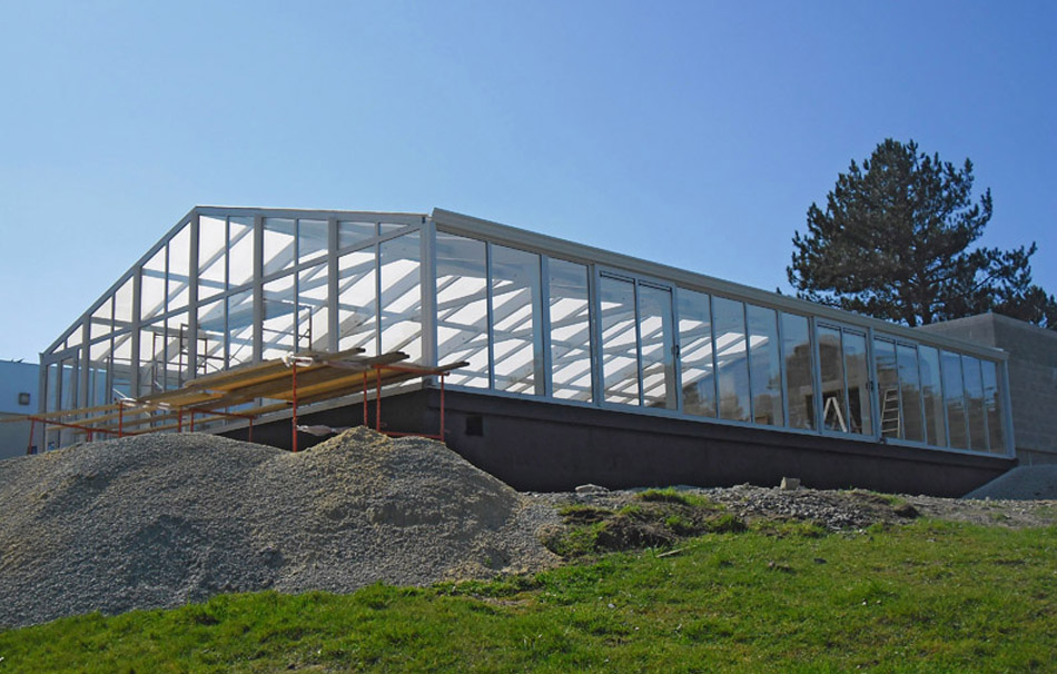 Suite à des expériences non concluantes de villages du groupe avec des abris de piscine traditionnels, l’architecte M. Revol, chargé du projet, établit l’appel d’offres des aménagements extérieurs avec une piscine couverte au moyen d’une véranda pour piscine.
