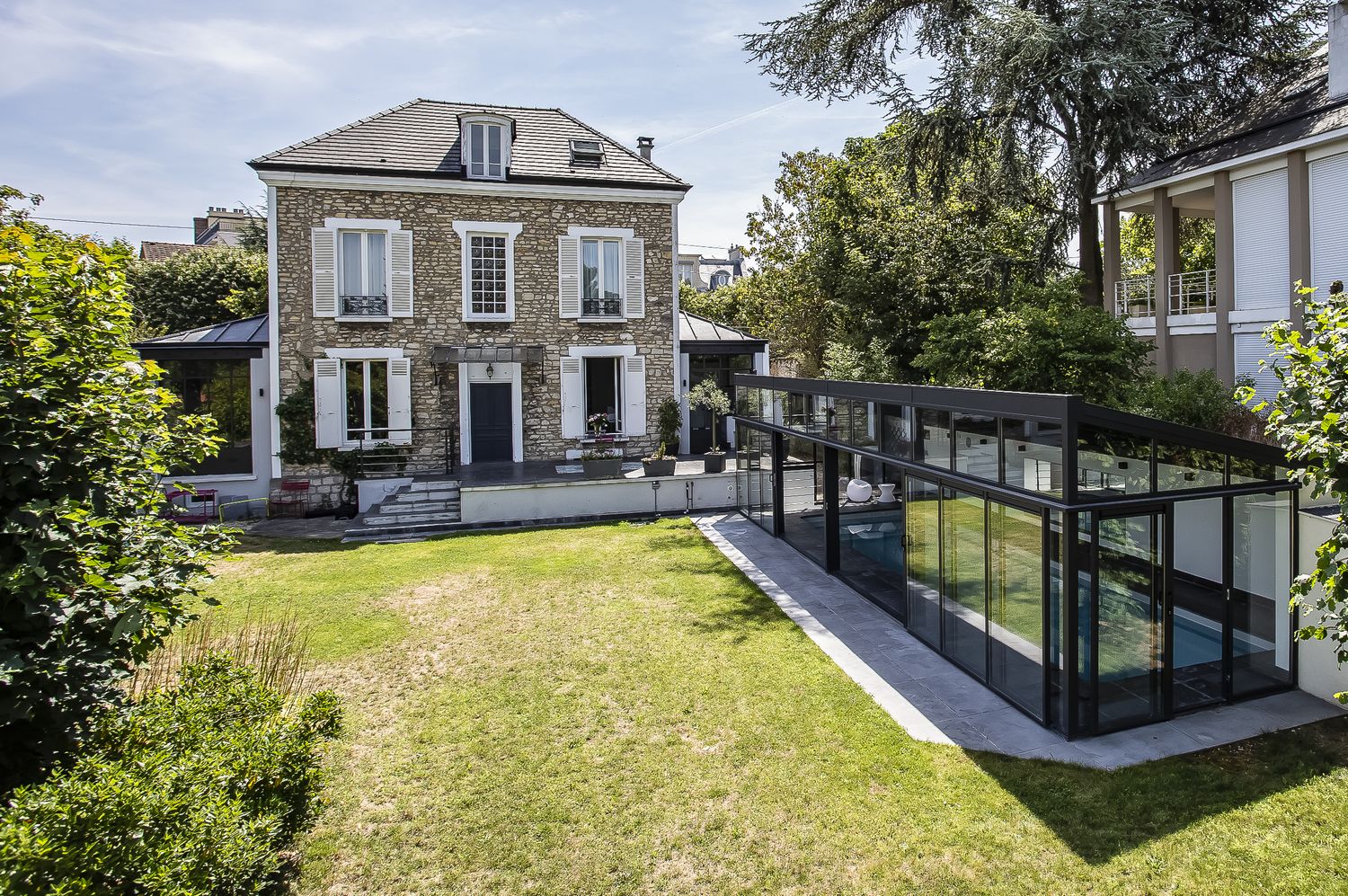 Val de Marne : belle demeure cherche piscine couverteEn Val de Marne, les rêves de baignade de Fatiha et de ses enfants se concrétisent sous la forme d’une piscine couverte. Accessible par un sous-terrain, cet espace sportif et douillet sublime le grand jardin inoccupé et répond à toutes les attentes de ses occupants. Une véranda intégrée qui dynamise la propriété Cette magnifique réalisation est né de l’idée des trois fils de Fatiha, émerveillés par les espaces piscines de leurs voisins et de leurs amis. Le projet est très vite validé par l’ensemble de la famille ! Sportive dans l’âme, Fatiha y voit d’ailleurs l’occasion de pratiquer au quotidien la natation, mais aussi d’animer le jardin.Le défi est de taille : la piscine couverte par une véranda doit être accessible depuis l’habitation, sans dénaturer le cachet de la propriété. Pour répondre à ce besoin d’harmonie et aux contraintes techniques, un accès par le sous-sol est imaginé. Une manière originale de profiter de tout le confort moderne à proximité… À travers ses lignes fines et élégantes, la réalisation dessine une structure discrète qui se mêle naturellement au paysage environnant. La véranda apporte également un vent de fraîcheur à cette partie du jardin qui manquait cruellement de vitalité. La famille imagine aussi une toiture de véranda à la configuration bien particulière… Une immense façade vitrée de près de 3m de haut offre une immense vue sur le jardin et invite la lumière naturelle à pénétrer dans ce petit coin de paradis. Afin de préserver l’intimité familiale, le toit en une seule pente présente des propriétés occultes. Il masque avec élégance les vues depuis les balcons de la maison voisine. Cerise sur le gâteau : un miroir de 6m conseillé par le piscinier illumine le mur et agrandit l’espace.Fruit du mariage entre loisirs et sportEspace de fêtes, lieu d’entraînement pour la natation, cocon de bien-être… Le lieu se transforme au gré des envies de ses propriétaires. La forme en couloir de nage de la piscine intérieure invite Fatiha à effectuer de nombreuses longueurs et à pratiquer une nage sportive. Elle s’entraîne d’ailleurs souvent pour ses futures compétitions de triathlon dans son espace de remise en forme… Les séances de natation se font dans le plus grand confort et la plus grande concentration, à l’abri de la météo extérieure. Les enfants sont eux aussi comblés de bonheur ! Les copains et les copines ne viennent jamais sans leur maillot. La piscine couverte est devenue un véritable « passage obligé » et un lieu de jeux pour les plus jeunes. Puis, à la faveur du soir, Fatiha affectionne particulièrement ses bains nocturnes. Un véritable havre de paix après l’agitation de la journée… Un projet réussi pour le plus grand bonheur de la familleExcellente nouvelle ! L’espace piscine couverte a apporté à la propriété une plus-value supérieure à l’investissement. Attentifs au coût et au respect du budget, nous avons d’ailleurs parfaitement respecté le devis initial. Les principales inquiétudes de ces heureux propriétaires ont toutes été prises en compte et notre équipe y a répondu avec minutie pour le plus grand bonheur de toute la famille !Caractéristiques techniques de la véranda pour piscine :Véranda modèle « Slim » en aluminium et doubles vitragesToiture en panneaux sandwich 32mmStructure autoportante de 4,50m x 12,50mHauteur côté de 2,10m avec imposte de 90cmÉquipement :Gouttière intérieure de récupération de condensationRails de coulissants encastrés pour l’évacuation des eaux après la nageVous aussi, confiez votre projet à notre équipe : demandez-nous un devis gratuit ! Contactez-nous pour nous confier vos projets etConcrétisez votre coup de cœur