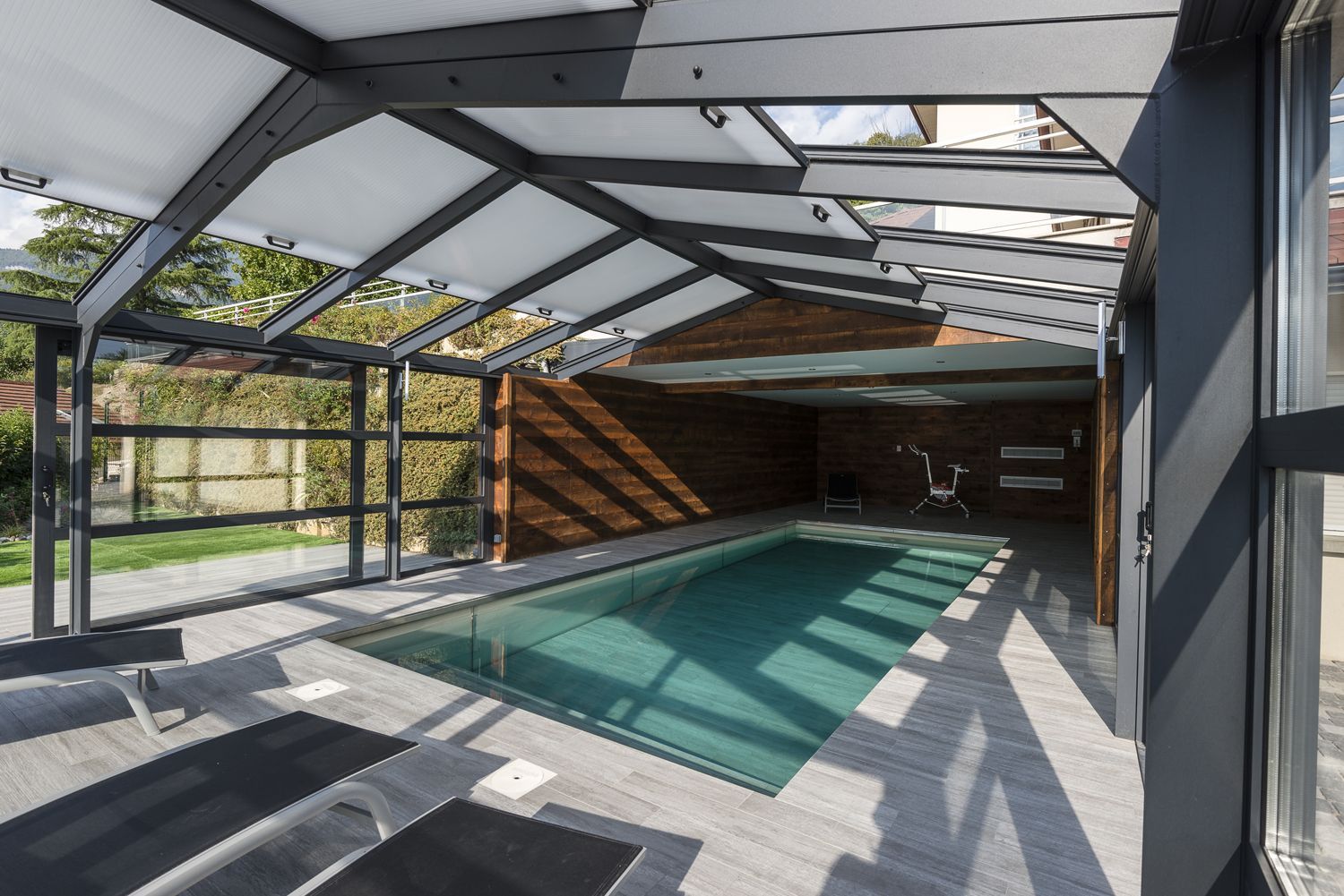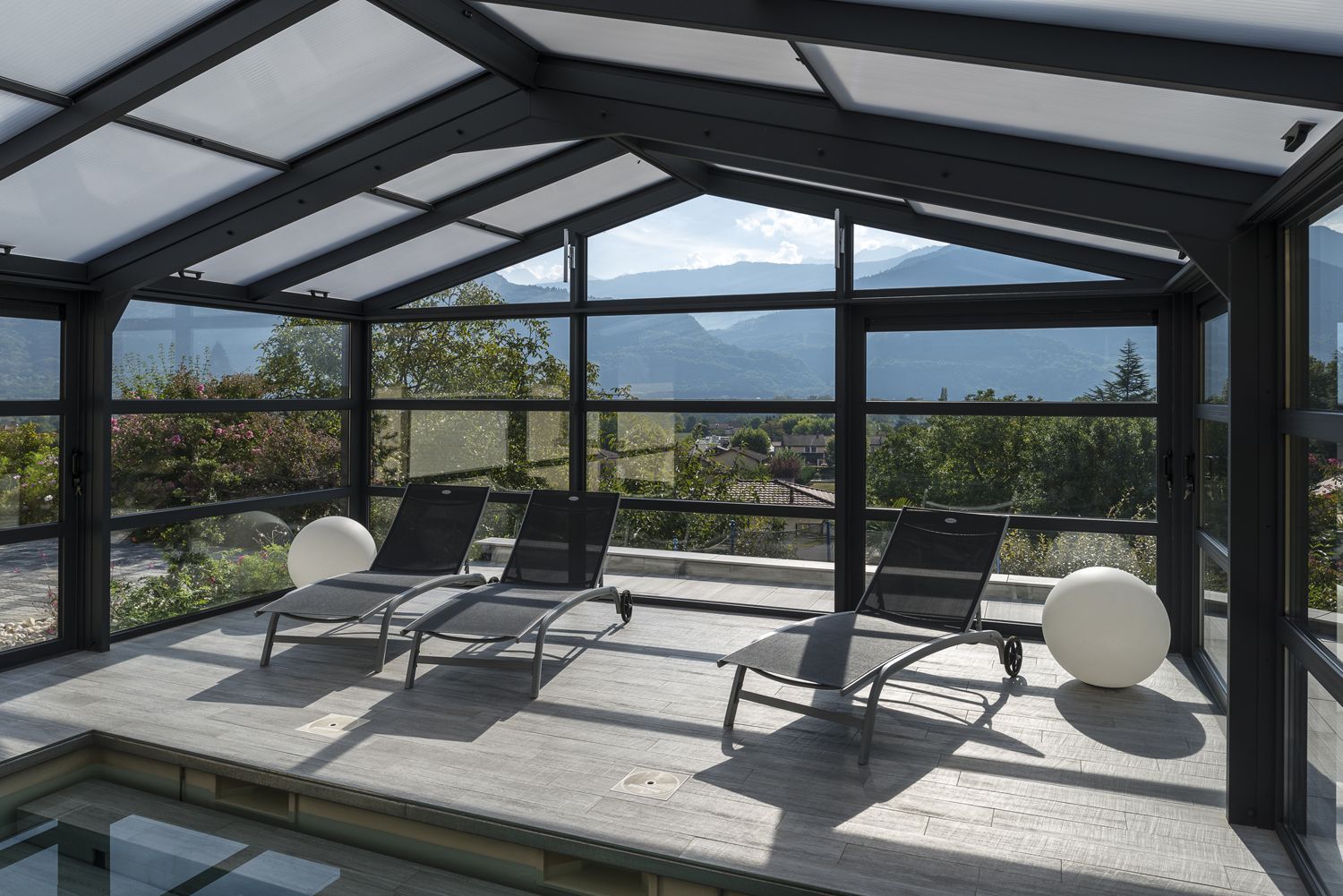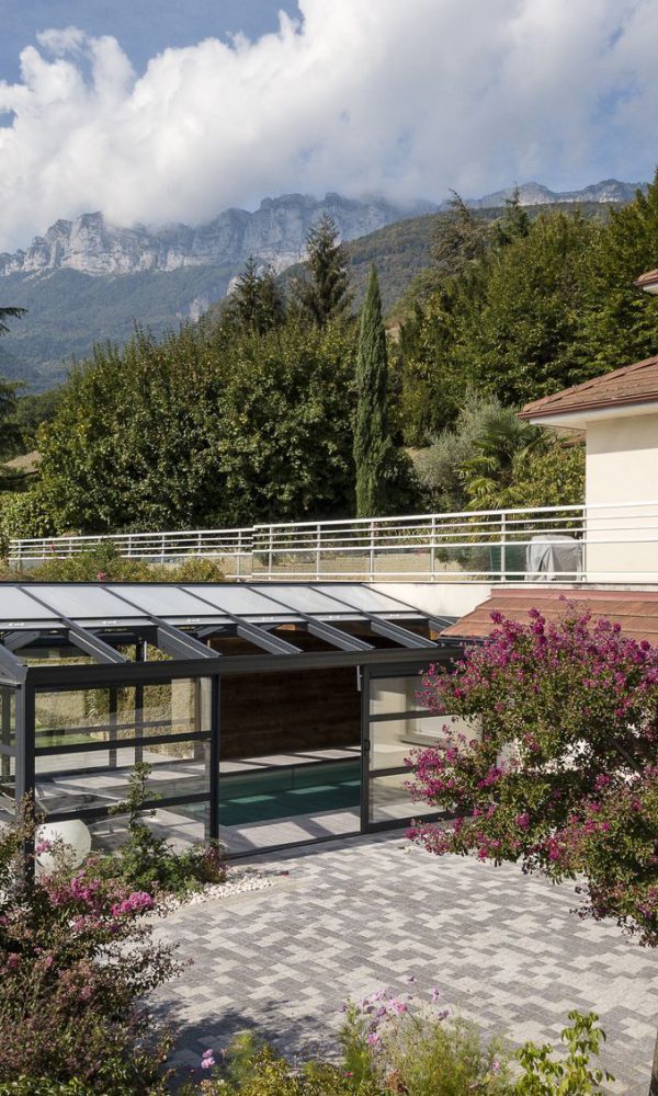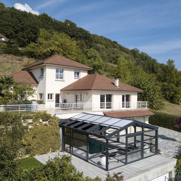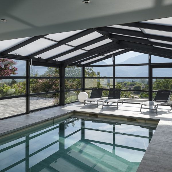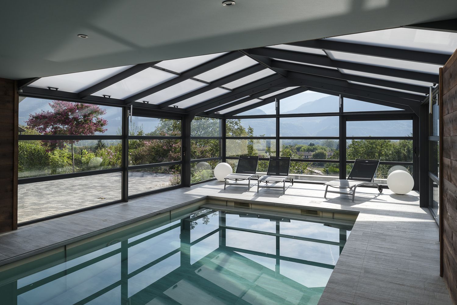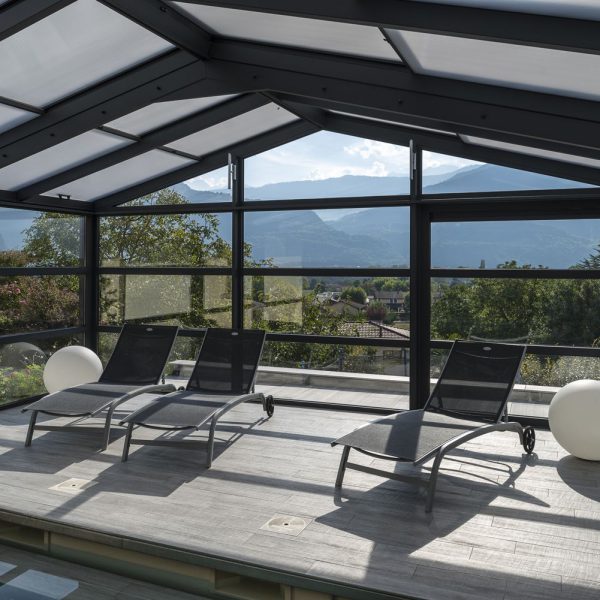 Au cœur des alpesLe style contemporain s’invite au cœur de cette véranda pour piscine Dotée d’un toit ouvrant en polycarbonate opalin, cette véranda pour piscine offre une magnifique vue sur le paysage environnant. Laissez-vous baigner par cette atmosphère de tranquillité en contemplant nos photos et notre vidéo. Contactez-nous pour une étude gratuite de vos projets Nous vous conseillons en fonction de vos besoins.
