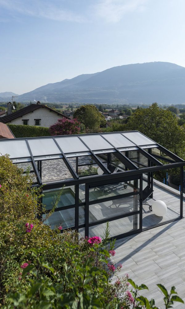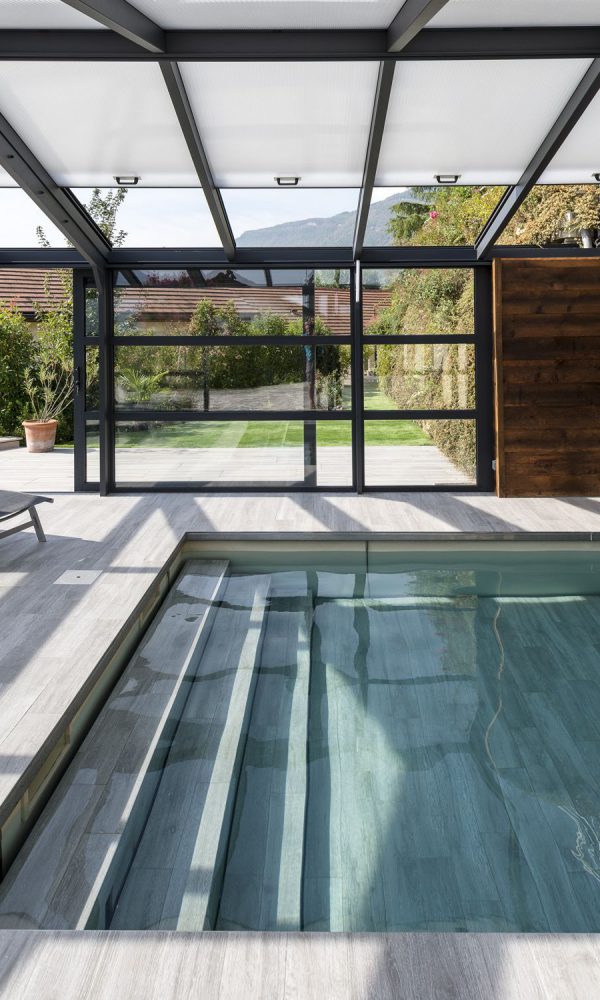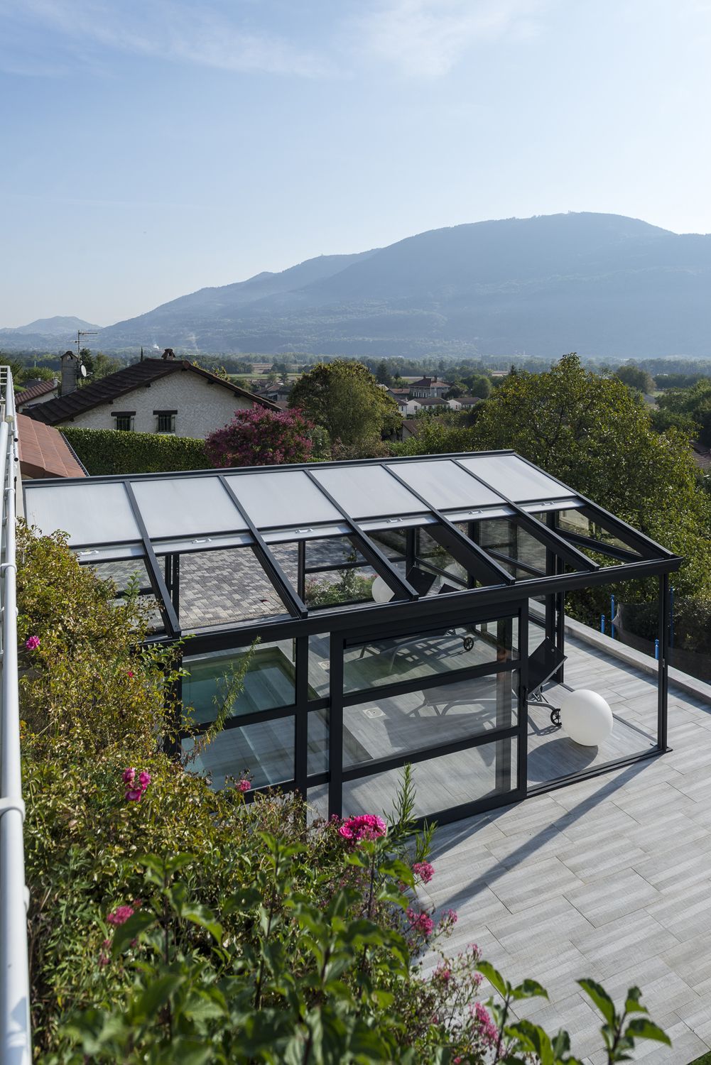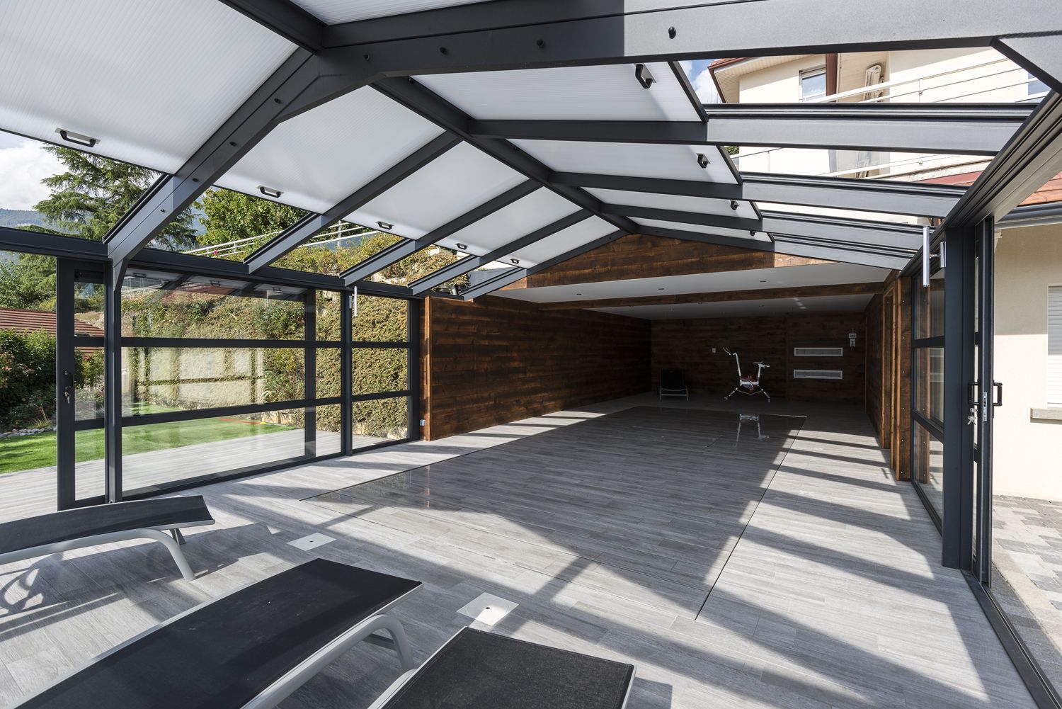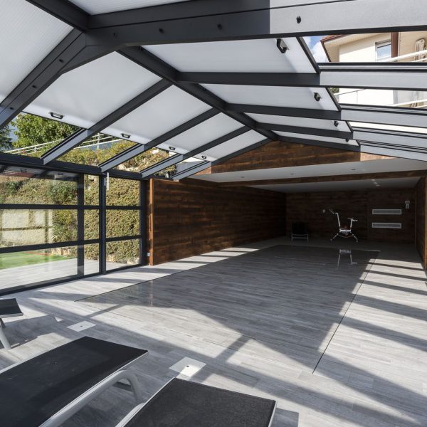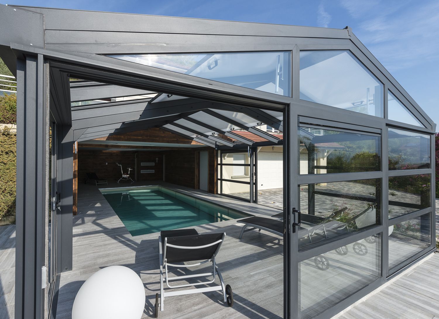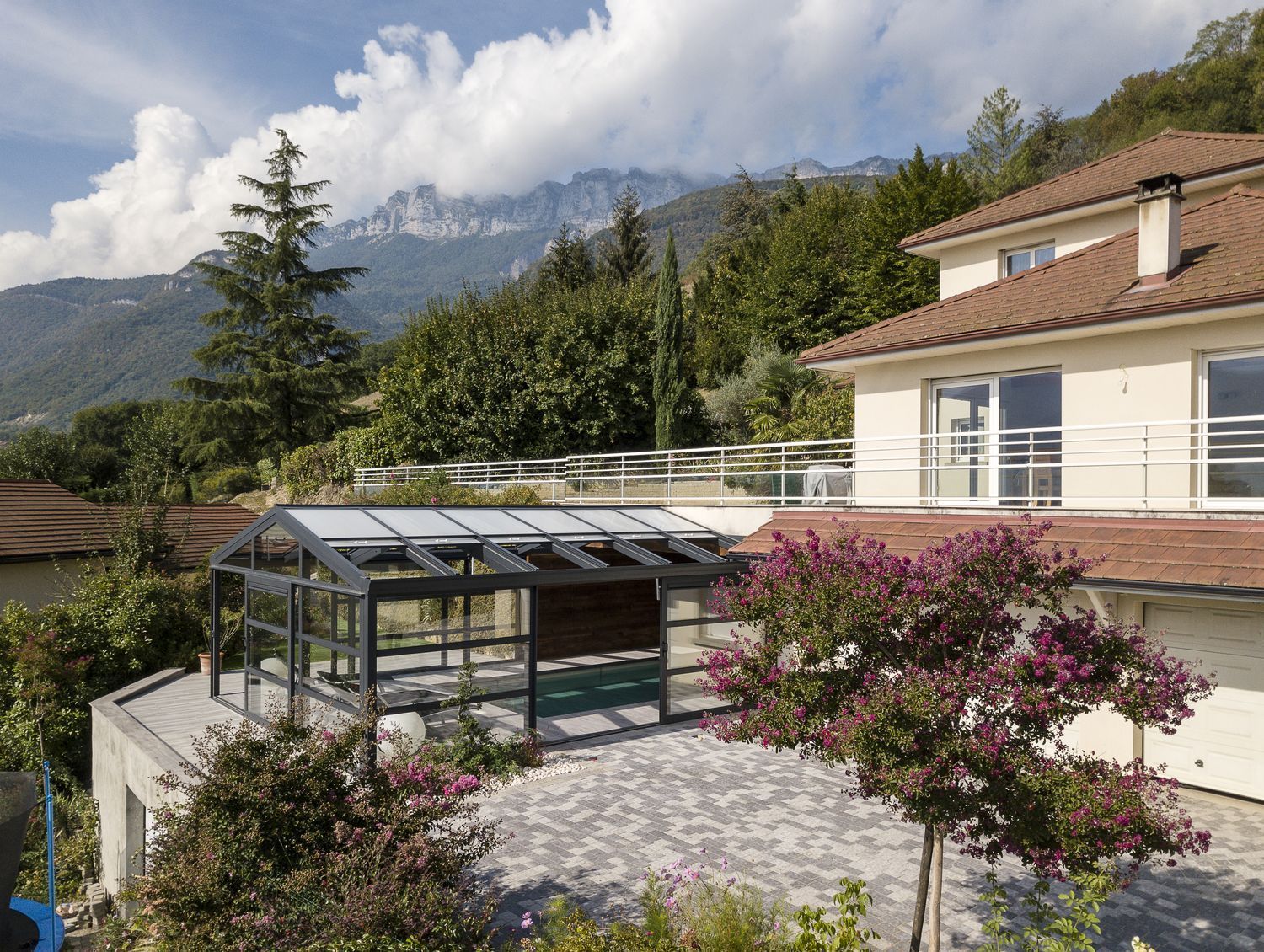 Au cœur des alpesLe style contemporain s’invite au cœur de cette véranda pour piscine Dotée d’un toit ouvrant en polycarbonate opalin, cette véranda pour piscine offre une magnifique vue sur le paysage environnant. Laissez-vous baigner par cette atmosphère de tranquillité en contemplant nos photos et notre vidéo. Contactez-nous pour une étude gratuite de vos projets Nous vous conseillons en fonction de vos besoins.