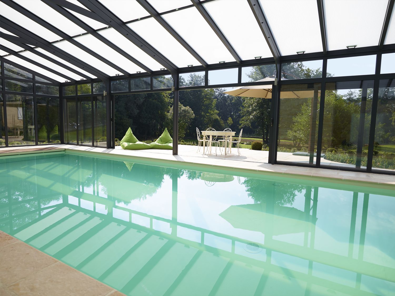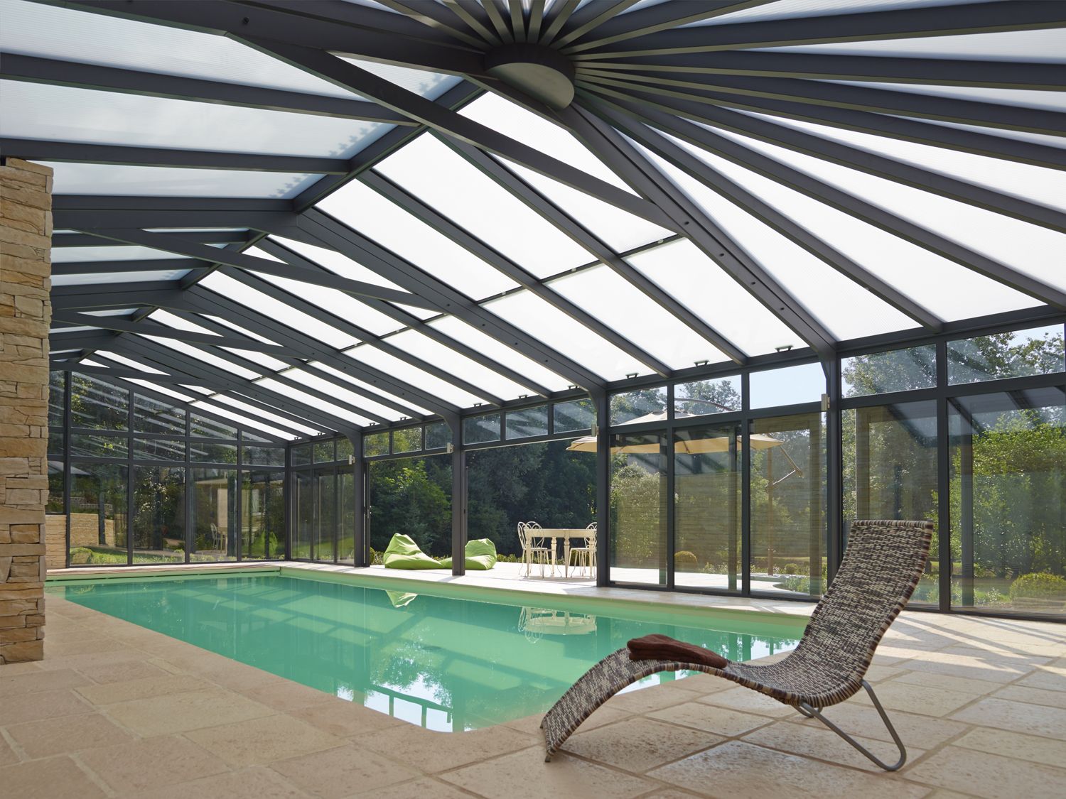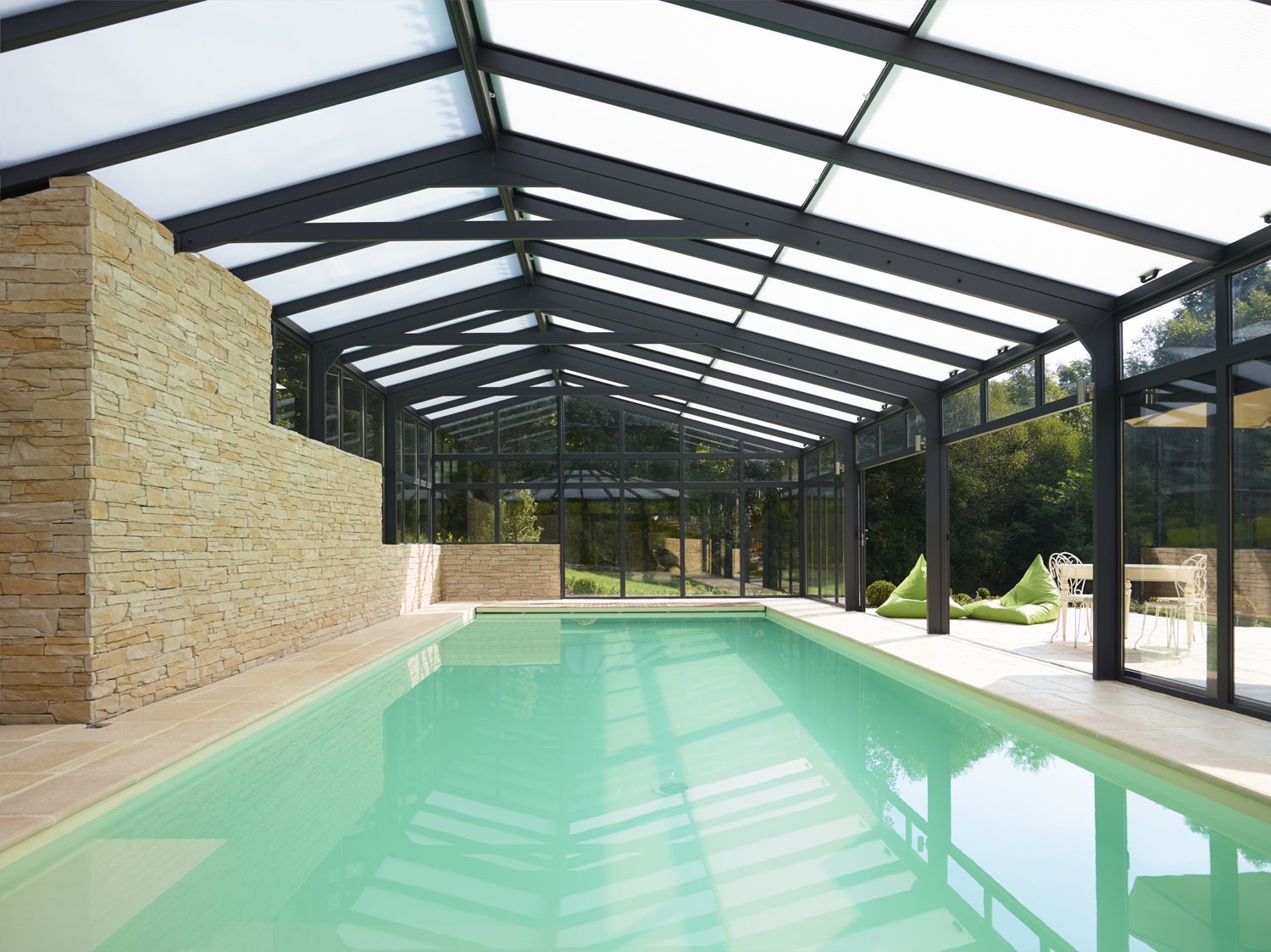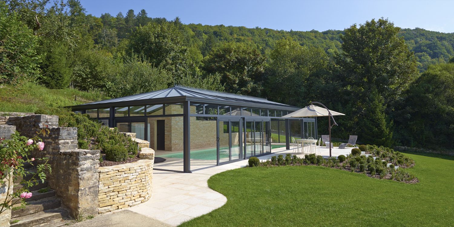 PISCINE INTÉRIEURE SOUS VÉRANDA en Côte d’OrUne réalisation qui vaut de l’or Une véranda pour piscine dans un espace de verdure… C’est ce que propose Cover Concept avec ce magnifique lieu de détente. La piscine est baignée de lumière grâce aux parois vitrées et à la toiture en polycarbonate. Contactez-nous pour une étude gratuite de vos projets Nous vous conseillons en fonction de vos besoins.