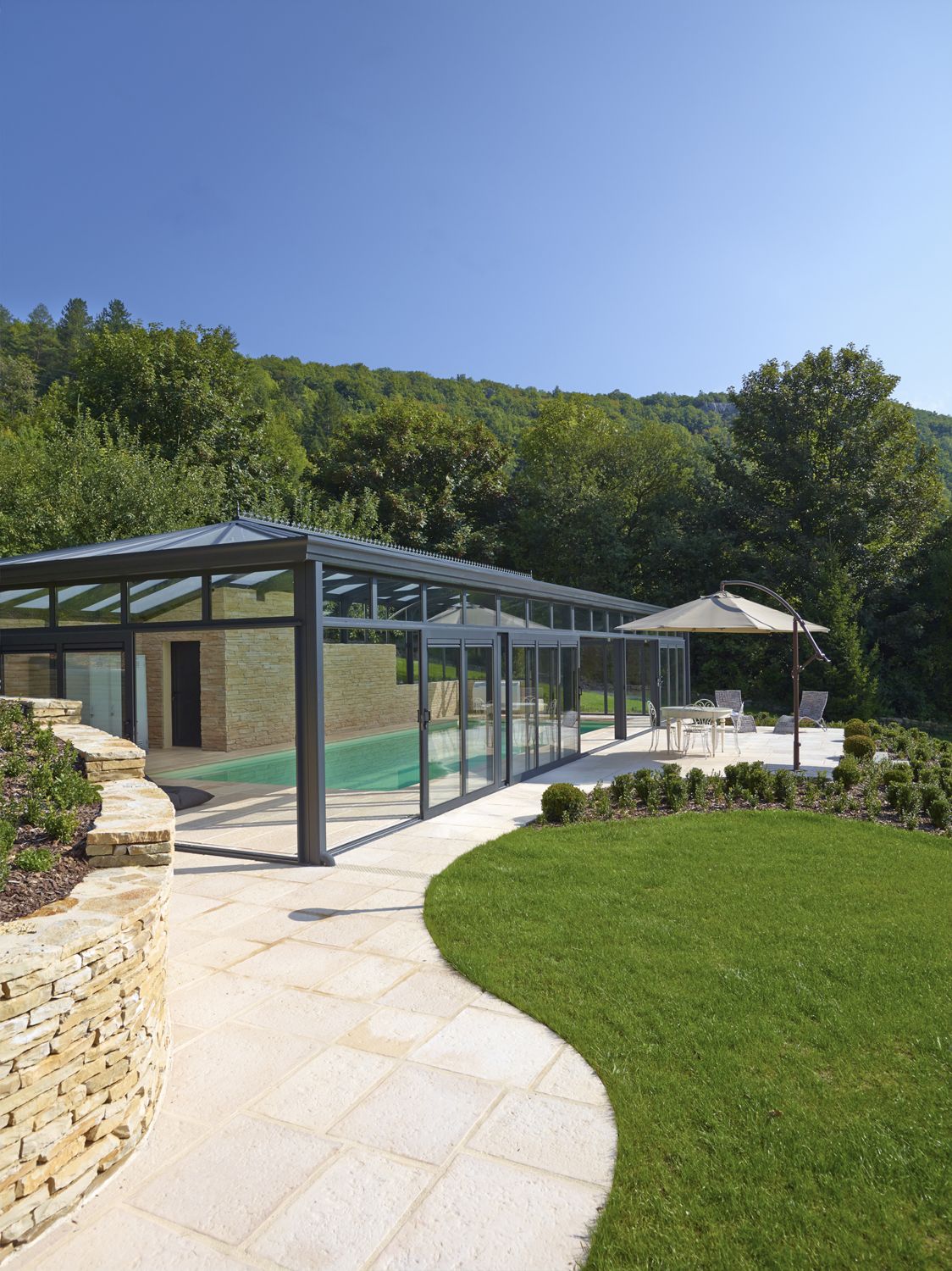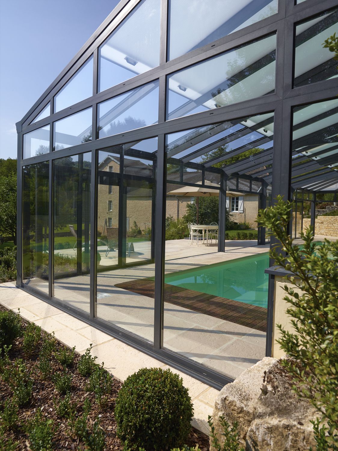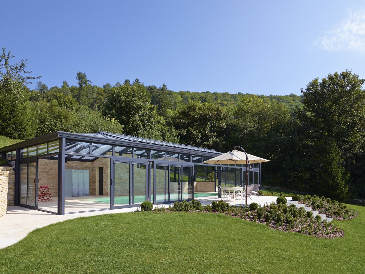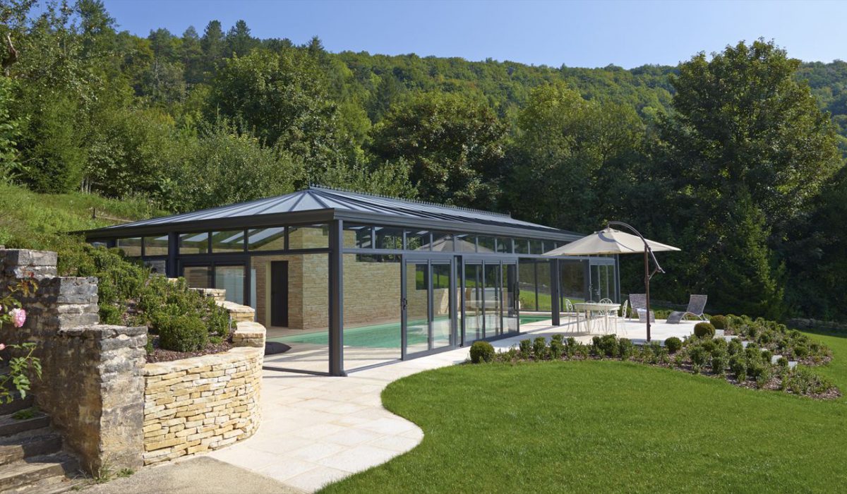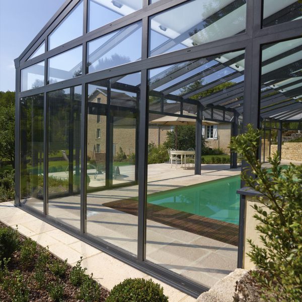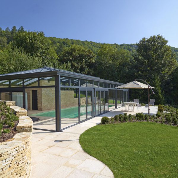 PISCINE INTÉRIEURE SOUS VÉRANDA en Côte d’OrUne réalisation qui vaut de l’or Une véranda pour piscine dans un espace de verdure… C’est ce que propose Cover Concept avec ce magnifique lieu de détente. La piscine est baignée de lumière grâce aux parois vitrées et à la toiture en polycarbonate. Contactez-nous pour une étude gratuite de vos projets Nous vous conseillons en fonction de vos besoins.