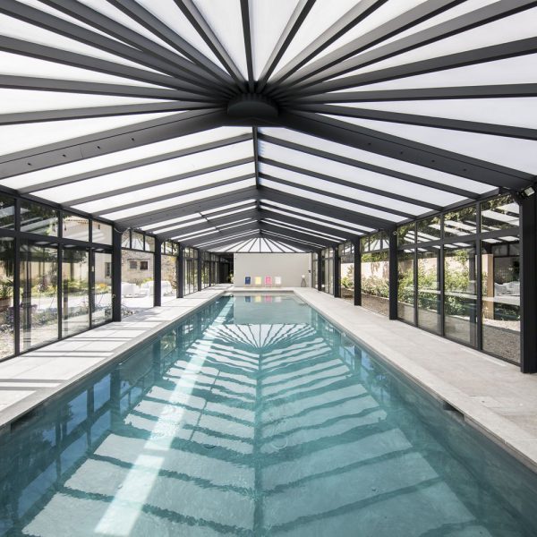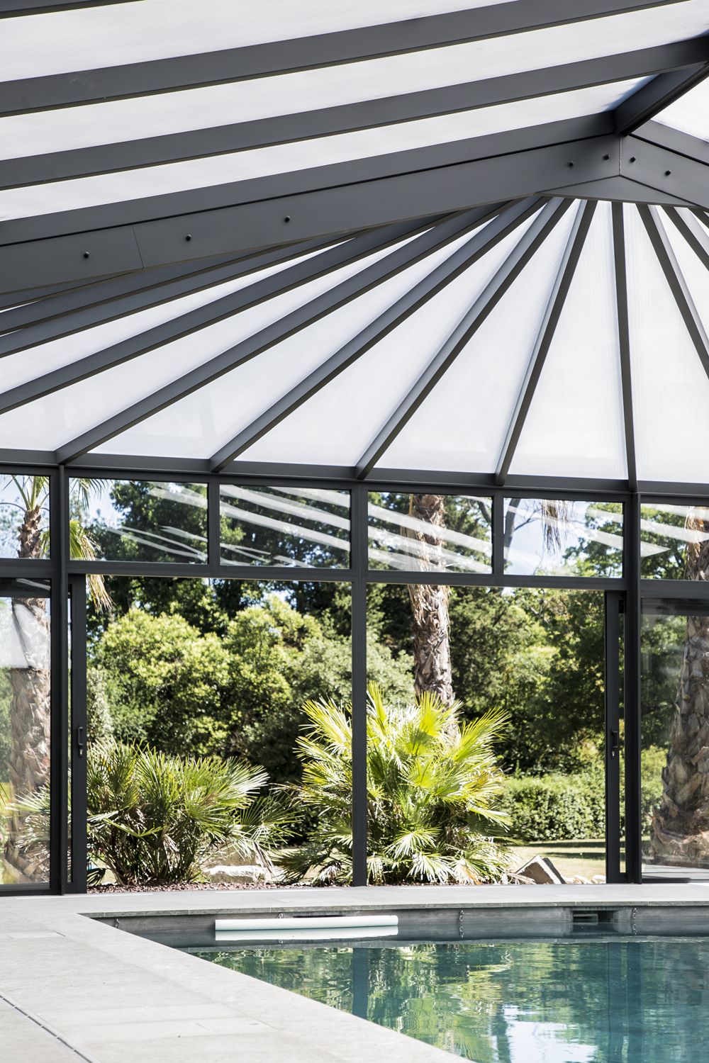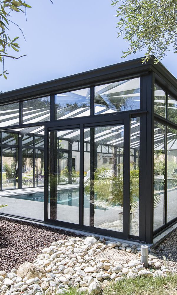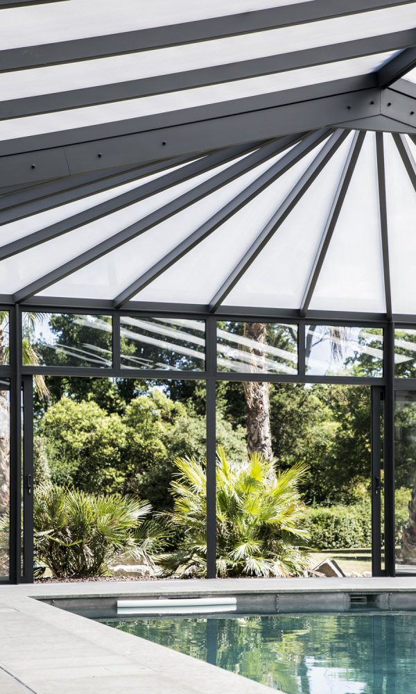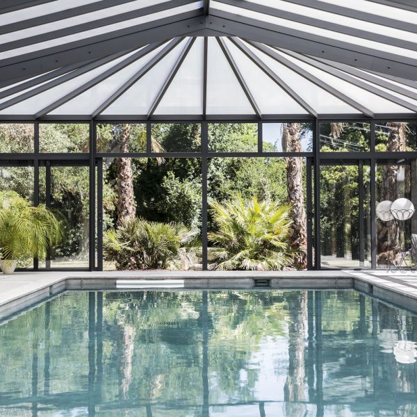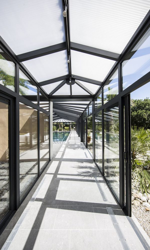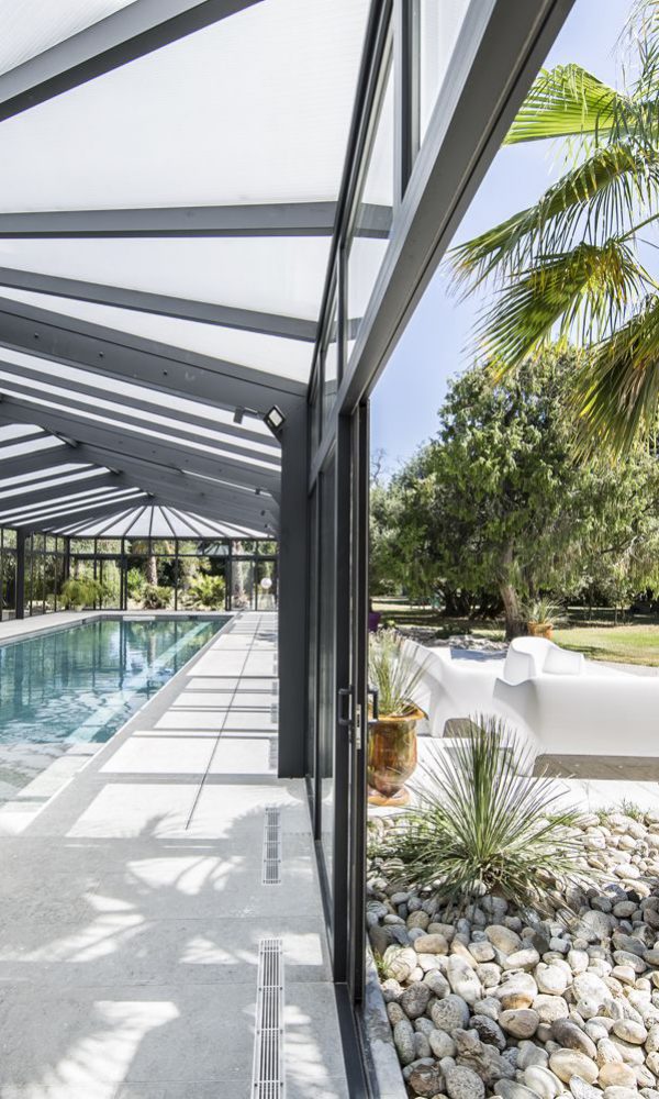 En OccitanieUne véranda de luxe à la structure imposante Cette véranda pour piscine ouverte sur l’extérieur permet à ses propriétaires de profiter de la nature avoisinante et des bienfaits du soleil, tout en restant à l’abri lorsque le temps se gâte. Un couloir d’accès relie directement la maison à la piscine pour davantage de facilité. Photos : © Fred Pieau Contactez-nous pour une étude gratuite de vos projets Nous vous conseillons en fonction de vos besoins.