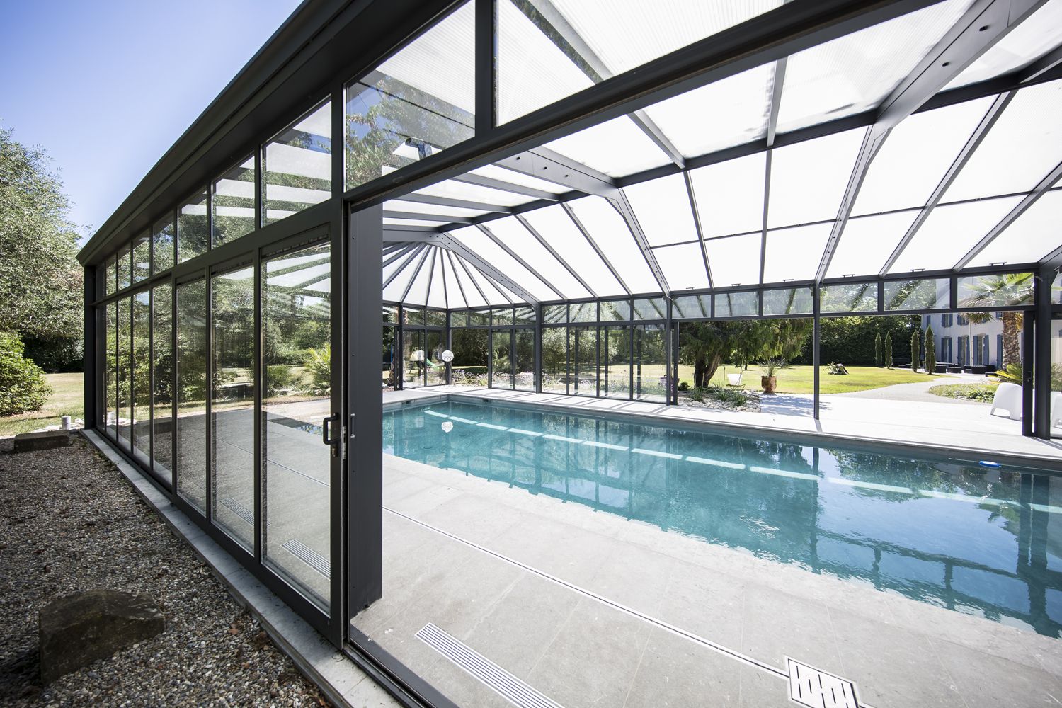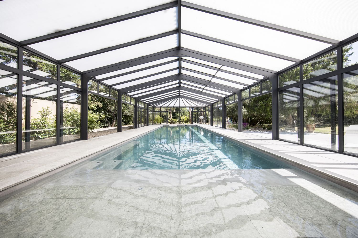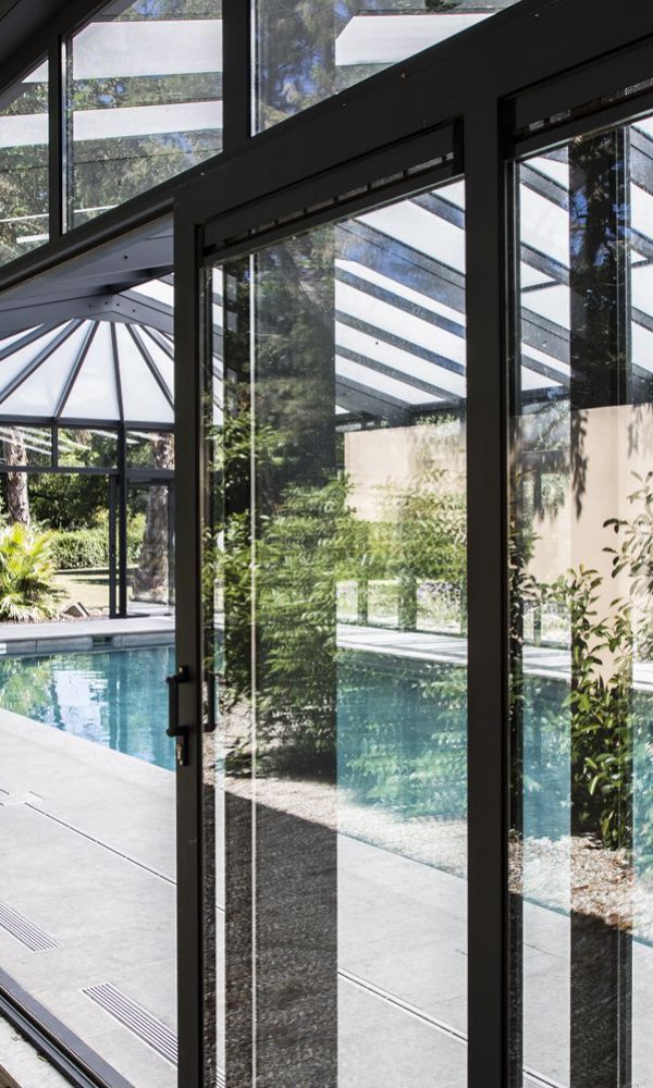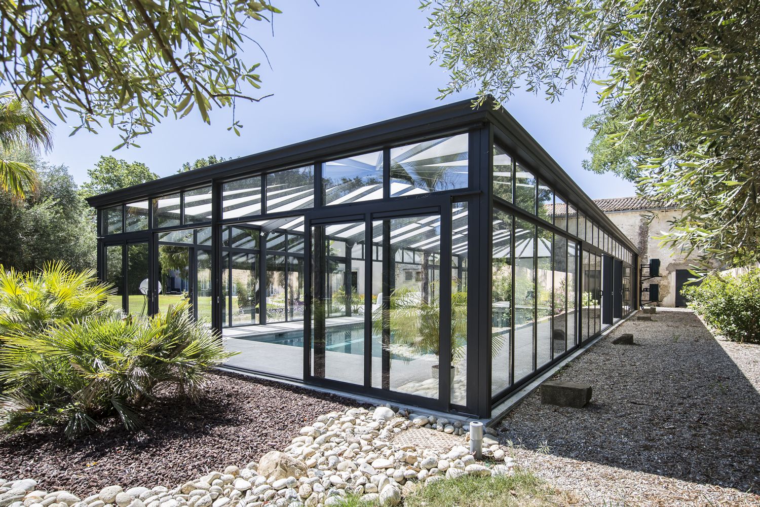 En OccitanieUne véranda de luxe à la structure imposante Cette véranda pour piscine ouverte sur l’extérieur permet à ses propriétaires de profiter de la nature avoisinante et des bienfaits du soleil, tout en restant à l’abri lorsque le temps se gâte. Un couloir d’accès relie directement la maison à la piscine pour davantage de facilité. Photos : © Fred Pieau Contactez-nous pour une étude gratuite de vos projets Nous vous conseillons en fonction de vos besoins.