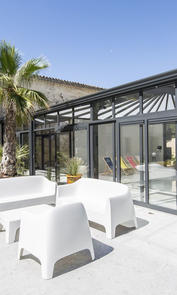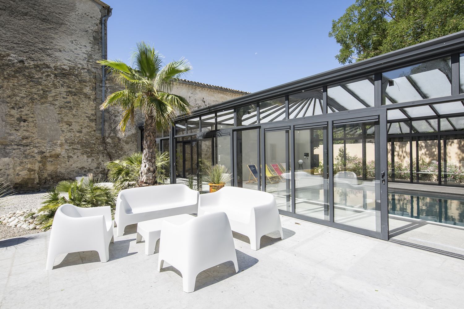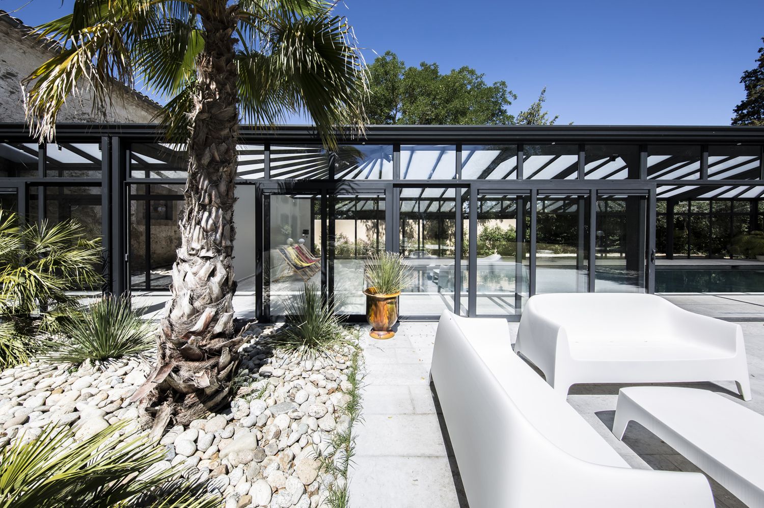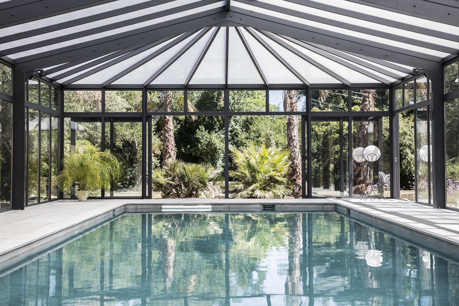 En OccitanieUne véranda de luxe à la structure imposante Cette véranda pour piscine ouverte sur l’extérieur permet à ses propriétaires de profiter de la nature avoisinante et des bienfaits du soleil, tout en restant à l’abri lorsque le temps se gâte. Un couloir d’accès relie directement la maison à la piscine pour davantage de facilité. Photos : © Fred Pieau Contactez-nous pour une étude gratuite de vos projets Nous vous conseillons en fonction de vos besoins.