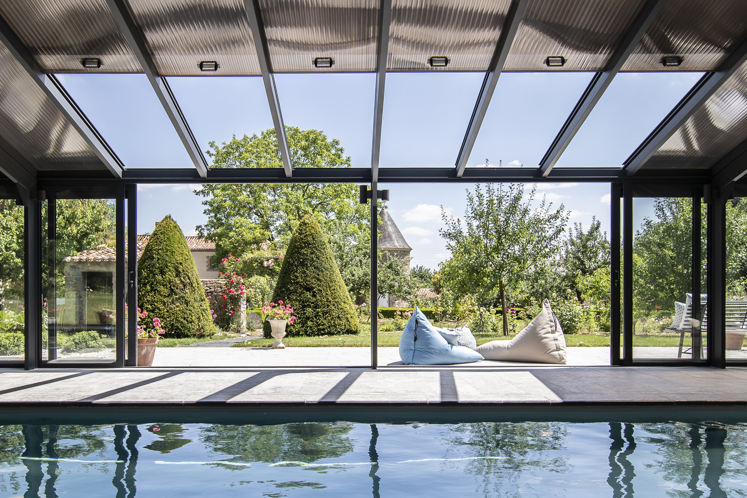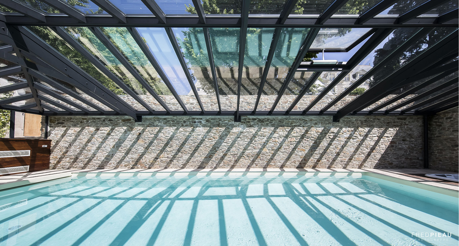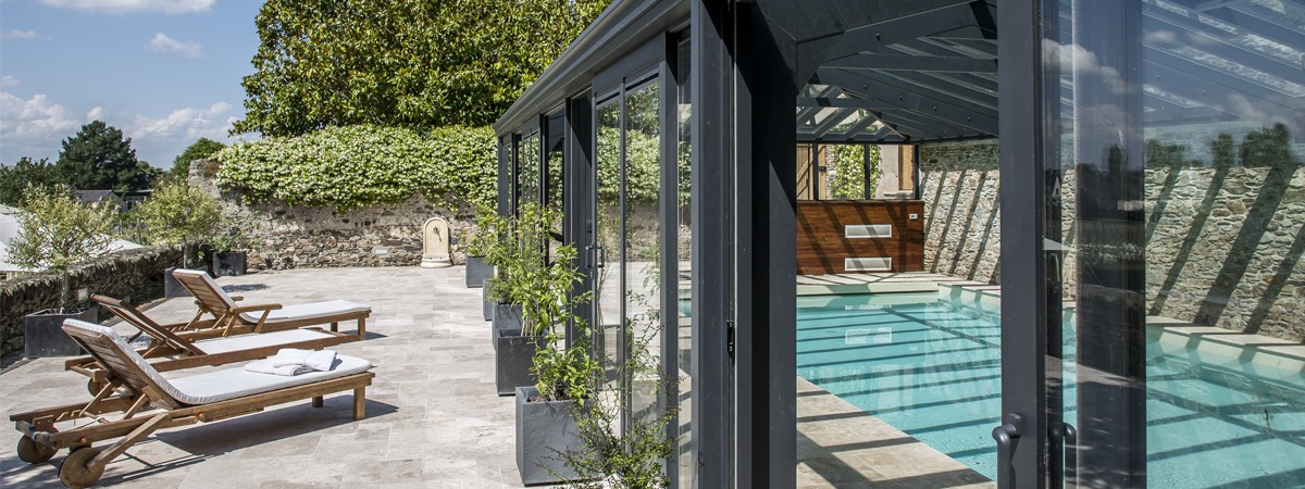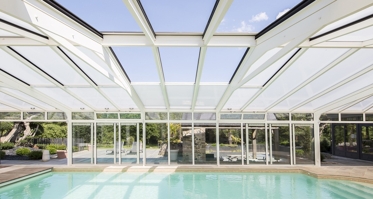 Toit de véranda piscine ouvrantVotre véranda pour piscine prend des airs de pergola grâce à notre toit ouvrant et coulissant. Un espace ouvert vers l’extérieur, une transition authentique vers le jardin pour profiter du grand air et être au plus proche de la nature. Maximisez l’ouverture de votre toit pour piscine en quelques gestes simples et profitez d’une sensation de liberté unique : votre piscine d’intérieur devient piscine d’extérieur !Simples d’utilisation, les châssis incorporés dans les travées rectangulaires dévoilent rapidement la nature avoisinante. La châssis inférieur glisse doucement sous le châssis supérieur fixe, et le tour est joué ! Vous pouvez aisément manipuler individuellement chaque partie de la toiture et la positionner de manière totalement ouverte ou fermée.L’avantage d’un tel système ? Il permet d’éviter l’effet de serre lors des plus belles journées d’été…Afin de faciliter votre quotidien, nous vous proposons également des ouvrants coulissants motorisés. D’une simple pression sur la commande électrique, le toit de l’abri s’ouvre comme par magie avec élégance et discrétion. En équipant la toiture de châssis coulissants motorisées, deux choix s’offrent à vous :Vous décidez d’ouvrir la partie basse des pans de toiture pour bénéficier d’une magnifique vue sur l’extérieurVous préférez ouvrir le toit le long de la faîtière pour profiter d’une ouverture zénithale au-dessus de la piscineLes ouvrants coulissants latérauxEn plus des ouvrants coulissants de toiture, nos ouvrants coulissants latéraux vous offrent une magnifique vue sur le jardin ou sur la terrasse en bordure de piscine. Ils intègrent aussi des grilles de ventilation pour évacuer les odeurs éventuelles de traitement de l’eau (chlore, etc.).Grâce à ces ouvertures latérales, vous contrôlez l’accès à la piscine et préservez la sécurité de vos enfants et de vos animaux de compagnies.Il est temps d'ouvrir une fenêtre sur le monde qui vous entoure ! Contactez nos experts. Intéressé(e) par nos vérandas à toit ouvrant ?Demandez votre devis gratuit