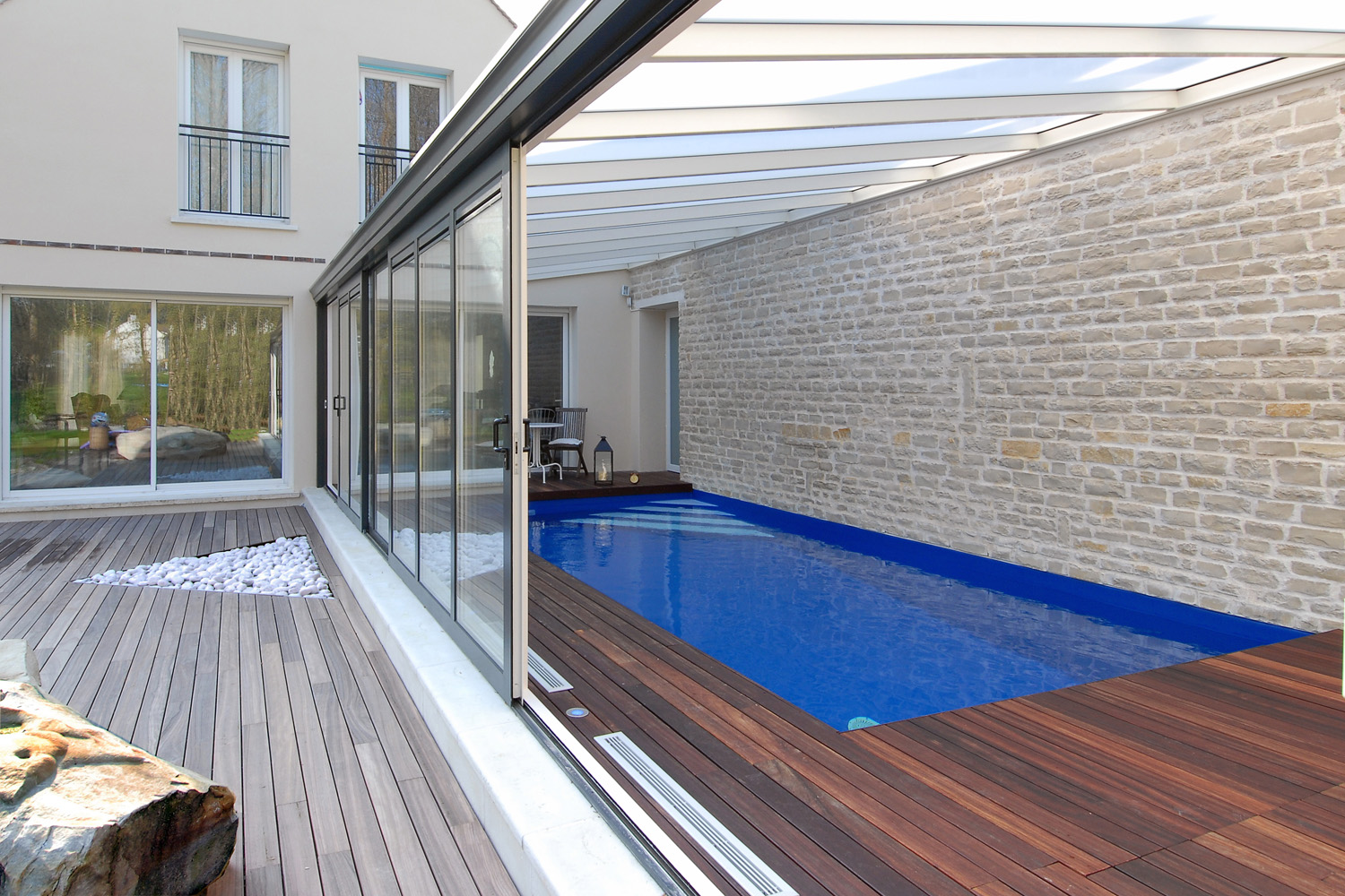 Véranda pour mini piscineLa taille ne fait pas la grandeur. Notre véranda pour mini piscine a spécifiquement été conçue pour les maisons de ville et offre une multitude d’options afin d’améliorer votre bien-être. Facile à intégrer, elle est accessible aux terrains de toute taille et s’adapte à chaque configuration. Son format en fait une option privilégiée pour optimiser l’espace de votre jardin et imposer sa dynamique naturelle. Vous pouvez donc à la fois profiter de votre bassin, aménager votre extérieur selon vos besoins et bénéficier d’une vue dégagée sur le paysage qui vous entoure. Un havre de paix dans un océan de verdure, un écrin de paradis dans le prolongement de votre habitation… Qu’elle soit installée en toute autonomie ou adossée à votre maison, la véranda pour mini piscine met en valeur votre propriété et apporte l’effet cocoon désiré. Ses dimensions compactes et son harmonie naturelle facilitent également l’introduction de vos demandes pour obtenir le permis de construire. Vous ressentez le besoin de vous évader, tout en préservant votre intimité ? Se sentir bien chez soi est essentiel ! Orientation, aménagement, emplacement… Tout est passé au peigne fin pour vous proposer une véranda sur-mesure, à l’abri des regards indiscrets. Économique et esthétique, la véranda pour mini piscine n’a rien à envier à sa grande soeur. Elle s’impose naturellement comme un espace de détente aux options flexibles. Votre rêve est à portée de brasse ! Permet l'optimisation de l'espace disponibleSpécifique aux maisons de villeIntégration harmonieuse avec l'environnementFormes et dimensions sur mesure Intéressé(e) par notre modèle de véranda "Slim" ?Demandez votre devis gratuit